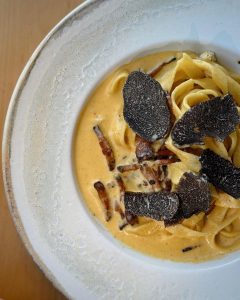 En ese marco, la trufa se ha integrado con naturalidad a preparaciones clásicas del restaurante, como la carbonara trufada y el foie gras trufado. Además, el equipo se encuentra explorando nuevas posibilidades. “Estamos probando para sacar muy pronto una pasta rellena con trufas”, adelanta Carrard.